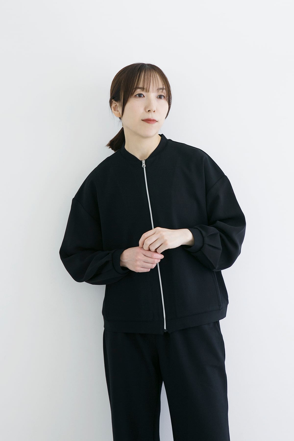 カーディガンのように羽織れる便利なブルゾン。ストレッチ性とキックバックに優れ、毛羽も少ないtsuki.sの定番的な素材です。 前あきジップのシルバーラインだけがポイントのシンプルなブルゾンですが、あまりマニッシュにならないように袖は身頃より薄い素材を使い、レディースの柔らかさを加えています。さらっとした落ち感のある素材ゆえ飽きることなくシーズンレスで着ていただけます。