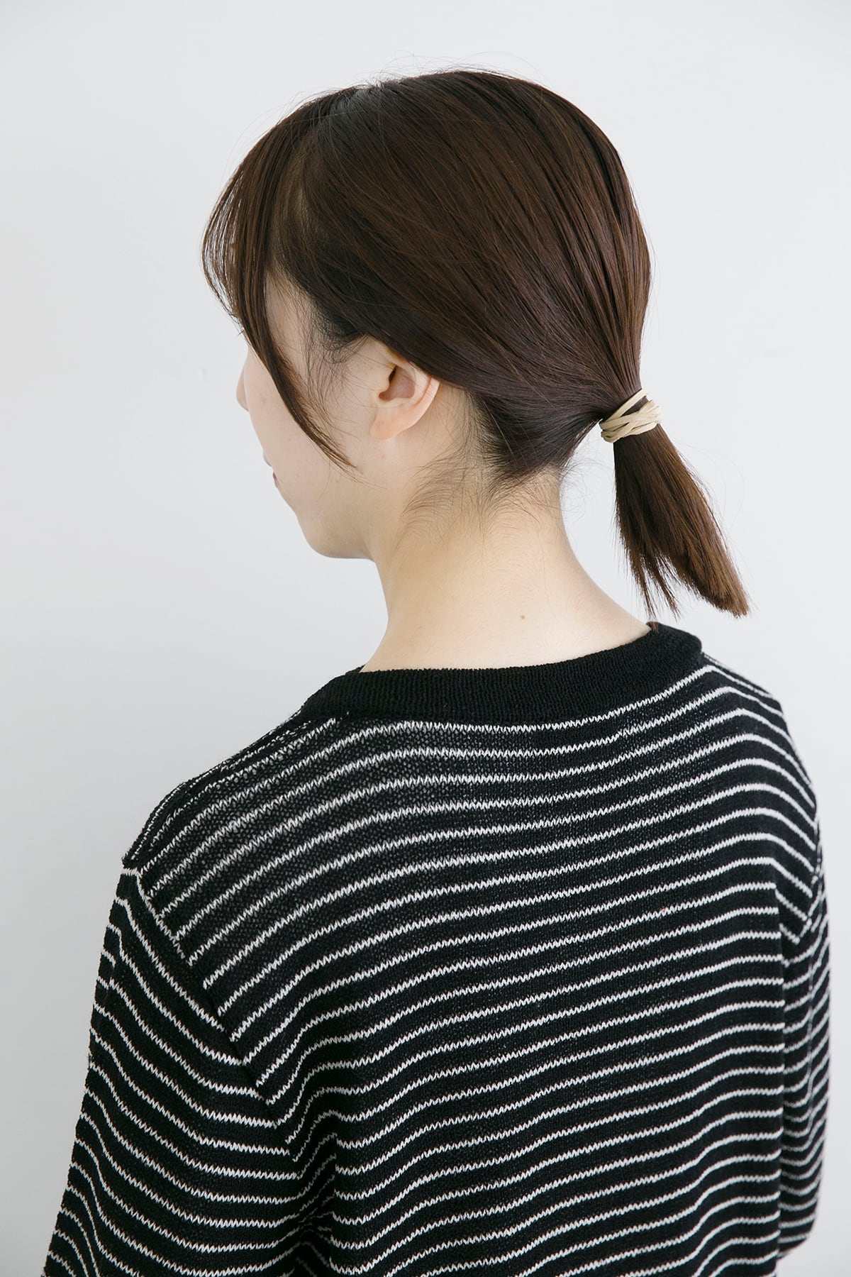 細いマリンストライプのプルオーバー。無地のボートネックプルオーバーをソフトなマリンストライプにしました。ウェーブヤーンの細いラインがくっきりではなく、柔らかくストライプが苦手な方でもお勧めできます。またボートネック部分は、前後の衿を柄分けしアレンジしています。 着用しても持ち歩きしても、ニットですが負担にならない軽さです。