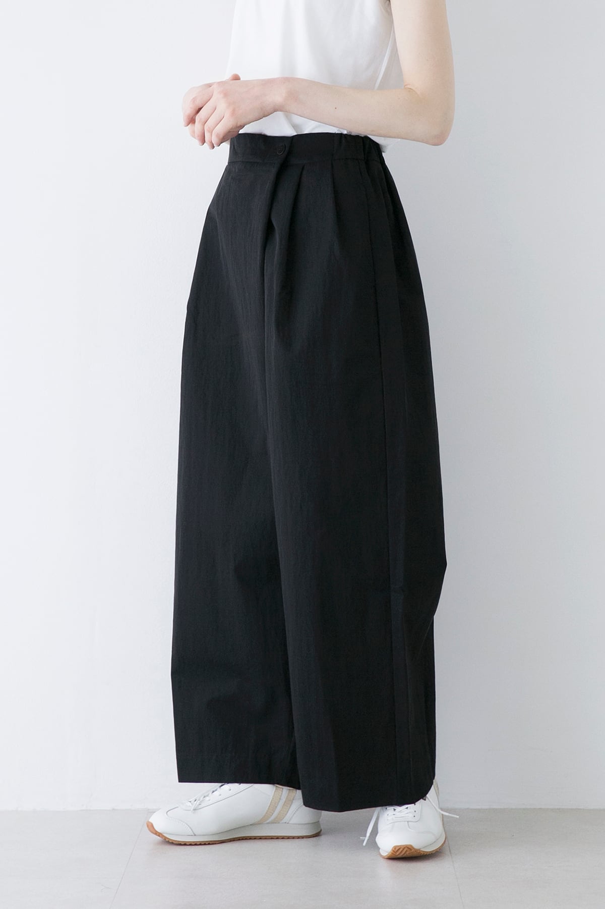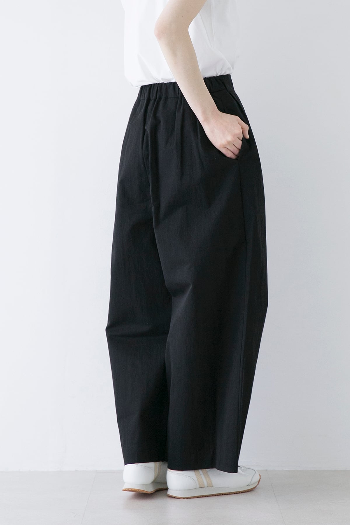 ひと味違うラップパンツでコーディネイト。ナイロン混の丈夫なコットンギャバはハリとワッシャー感をラフに楽しんで頂きたい素材です。とても軽量なので分量があるラップスタイルのパンツに仕上げました。シンプルなトップスには遊びのあるボトムはとても良いアクセントになります。ベーシックカラーなのでブルゾンとのセットアップもお勧めします。