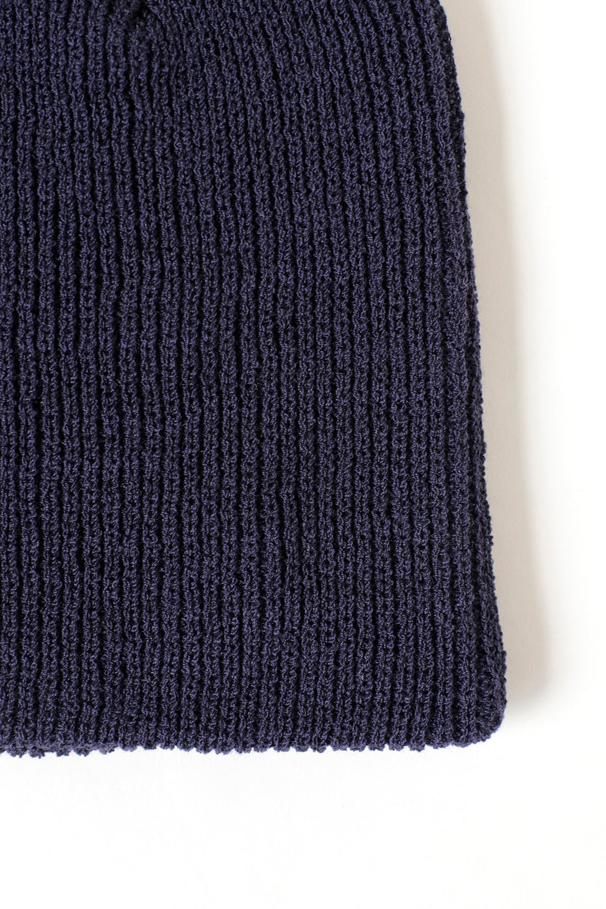 tsuki.sのシグネチャーとも言える強撚糸で作ったニット帽です。通常より撚りをかけた糸なのでウールではあまりみられないドライ感があるニットです。緩めに編んだ畦編みで帽子を作りました。きれいな発色なので、冬のコーディネートのポイントになると思います。